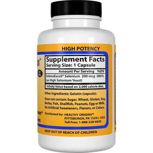 헬시오리진스 내추럴 셀레노 엑셀 하이 포텐시 클리니컬리 스터디드 셀레니움 200mcg 캡슐, 180개입, 1개